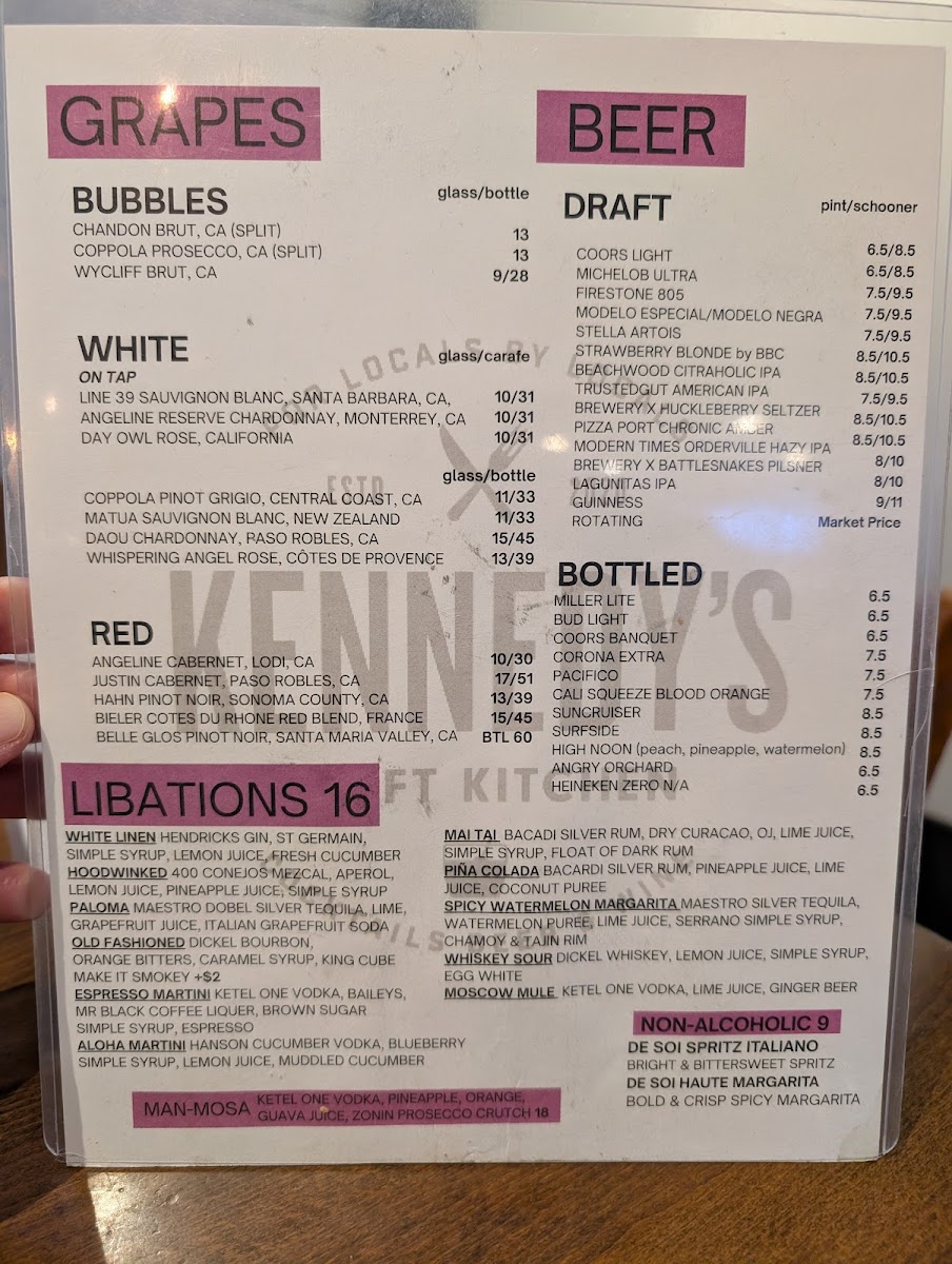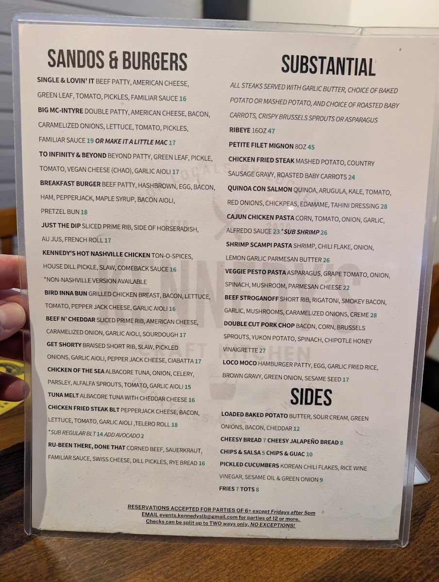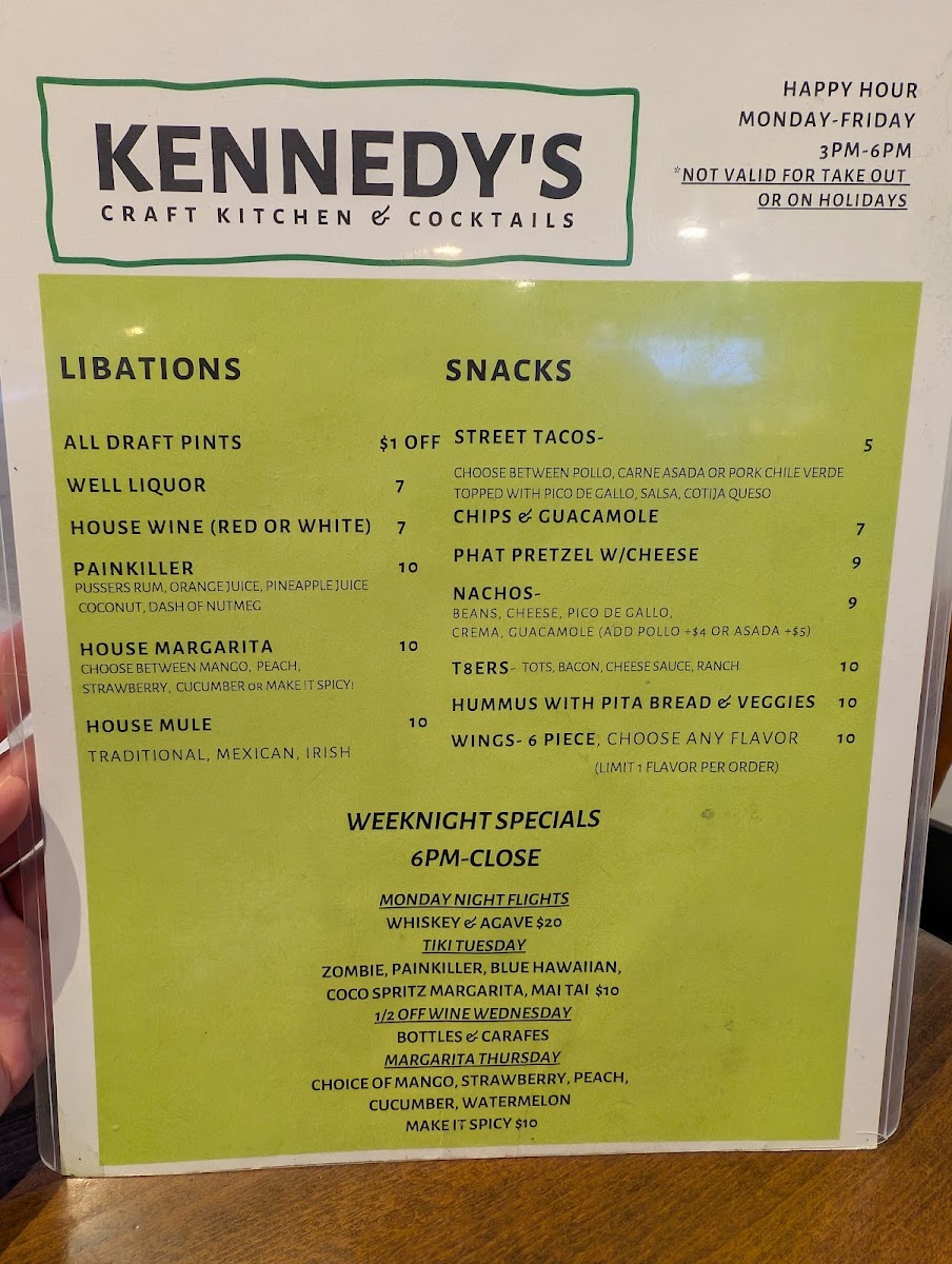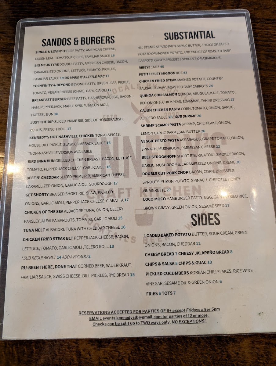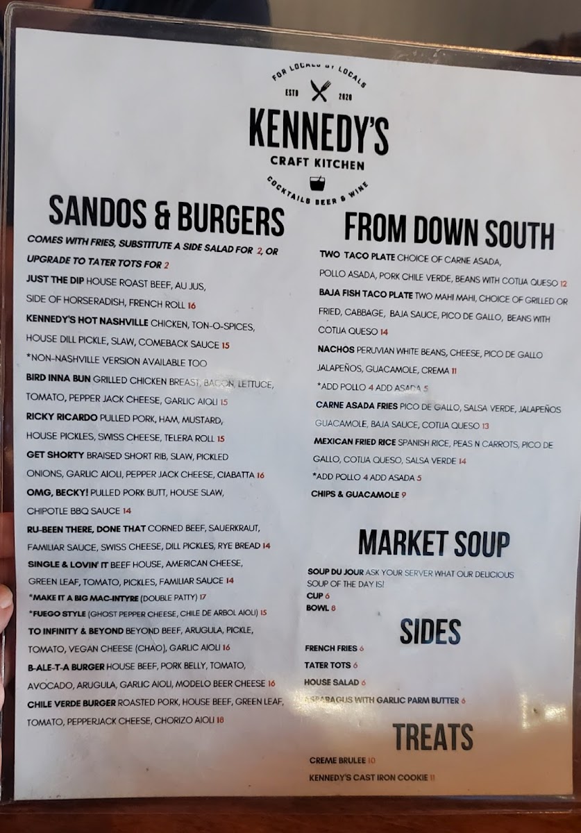 Kennedy's Craft Kitchen & Cocktails Menu